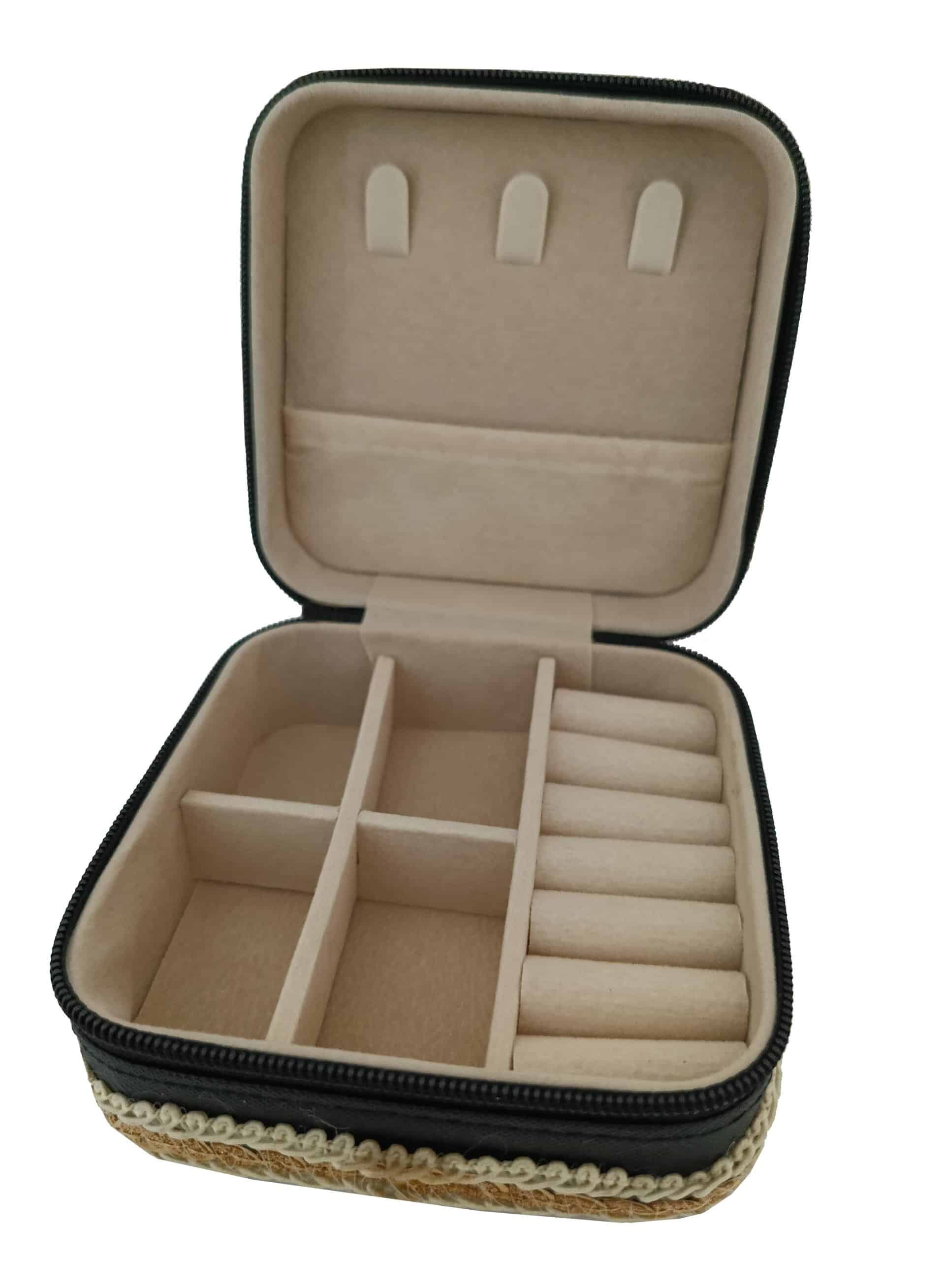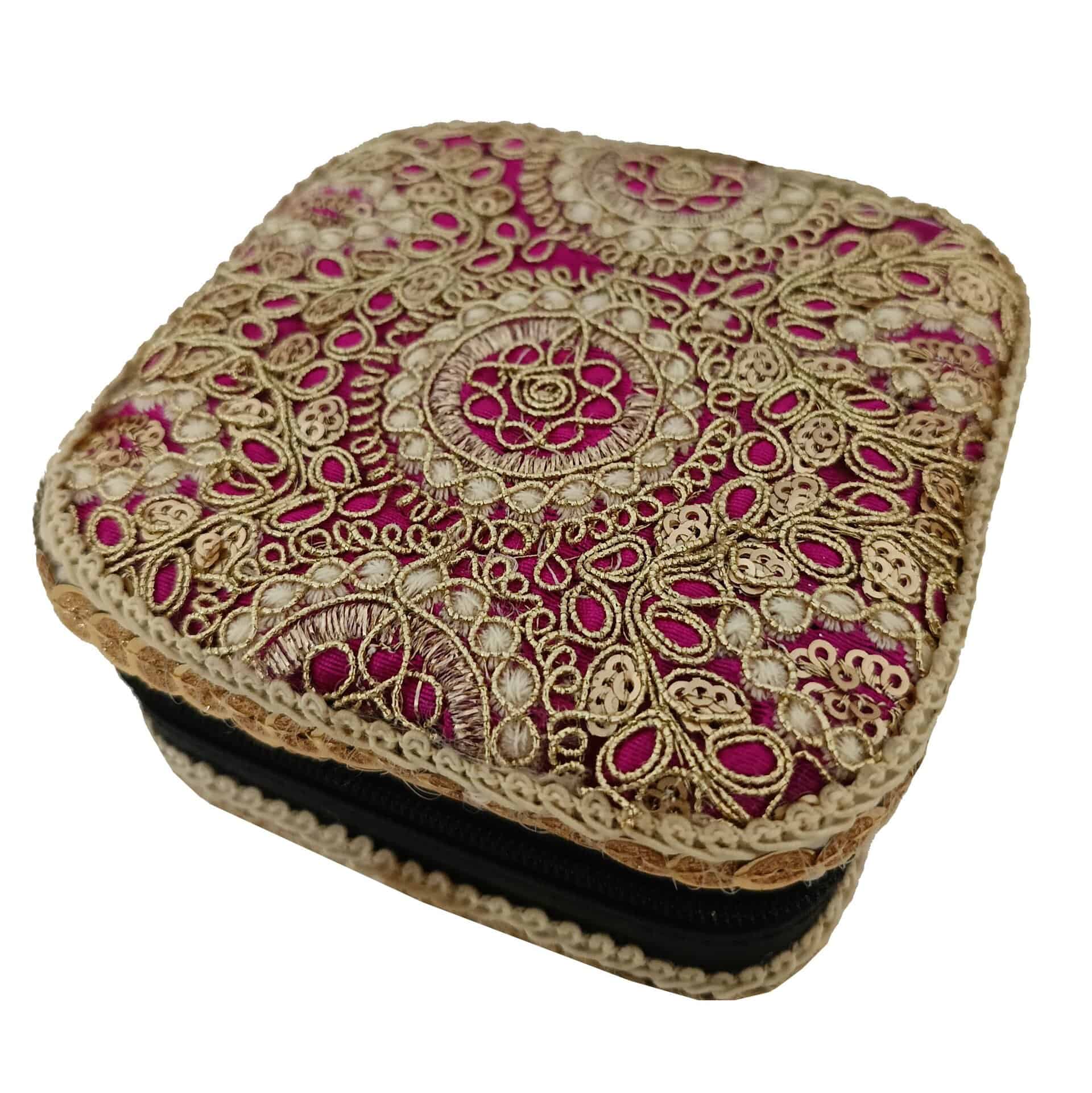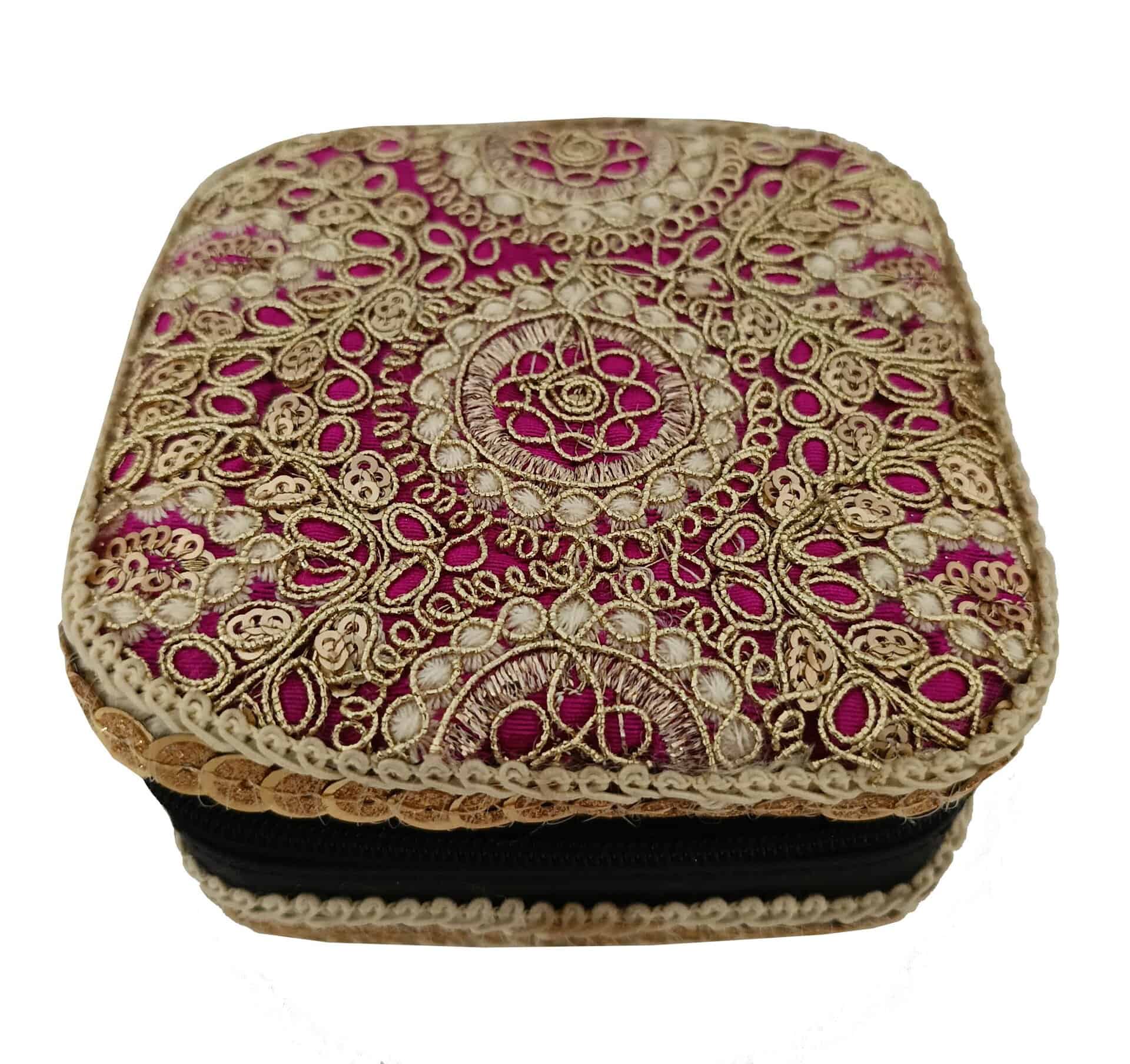 Dit prachtige sieradendoosje met unieke details is perfect om je favoriete Loffs sieraden in te bewaren. Naast functionaliteit voegt dit sieradendoosje ook een vleugje stijl, elegantie en eigenheid toe aan je kaptafel. Het sieradendoosje heeft diverse vakjes en details aan de binnenkant om al je favoriete sieraden mooi en overzichtelijk in op te bergen. Het doosje is makkelijk af te sluiten door middel van een rits. Ideaal ook om mee te nemen op reis. Onze sieradendoosjes zijn vervaardigd van kleurrijke linten en stoffen uit India. Deze selecteren wij met liefde en zorg en worden met de hand gemaakt door getalenteerde ambachtslieden in India. Zij werken onder eerlijke werkomstandigheden en een ontvangen een eerlijk loon voor hun vaardigheden.