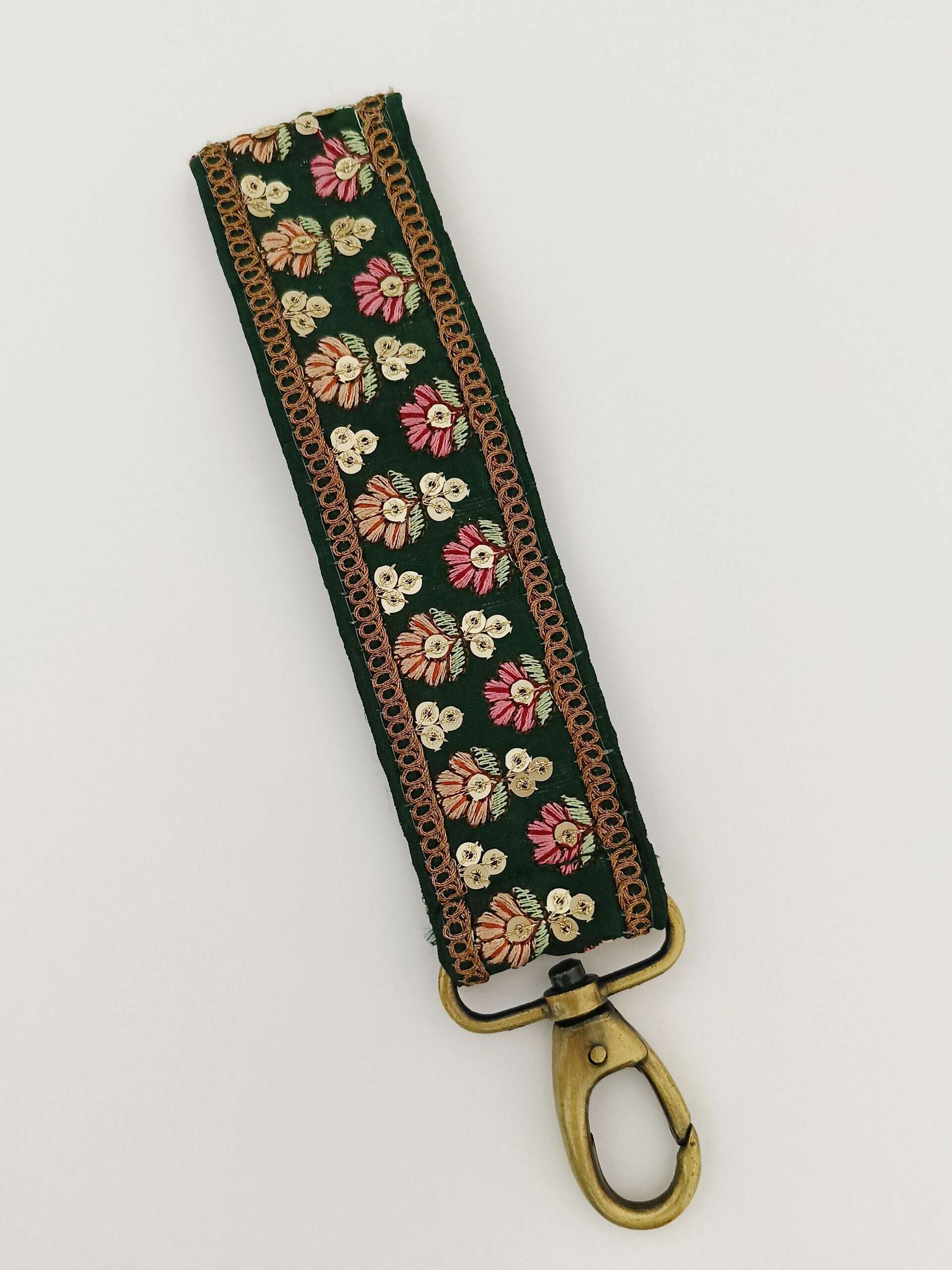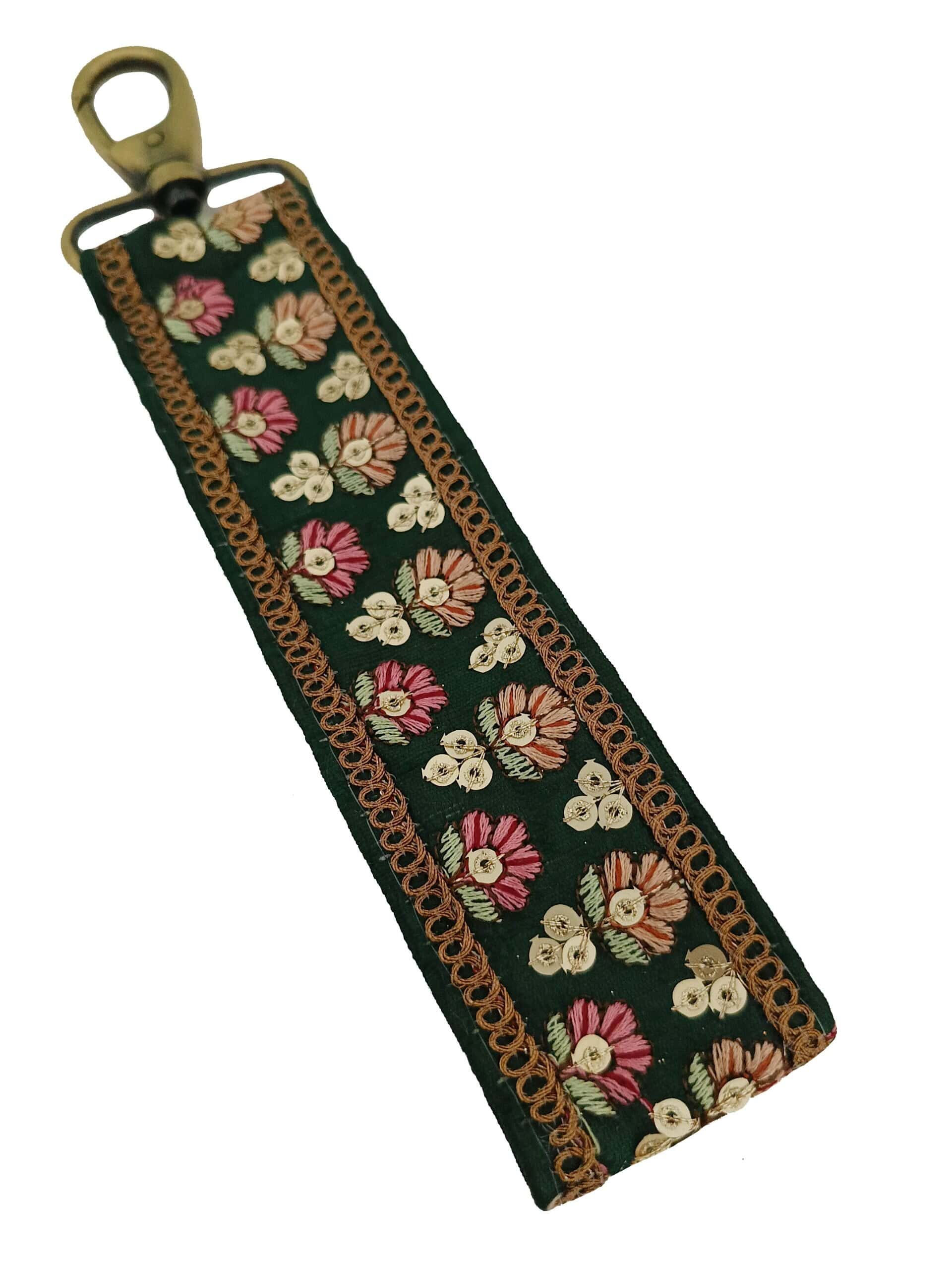 Hoe leuk is deze sleutelhanger met prachtige details! Bevestig hem aan je tas of telefoon voor een vrolijke touch. Deze unieke sleutelhanger is gemaakt van hoogwaardig lint uit India. Deze selecteren wij met liefde en zorg om een vleugje kleur en stijl aan jouw dagelijks leven toe te voegen. Deze sleutelhangers worden met de hand gemaakt door getalenteerde ambachtslieden in India, die werken onder eerlijke werkomstandigheden en een eerlijk loon ontvangen voor hun vaardigheden.