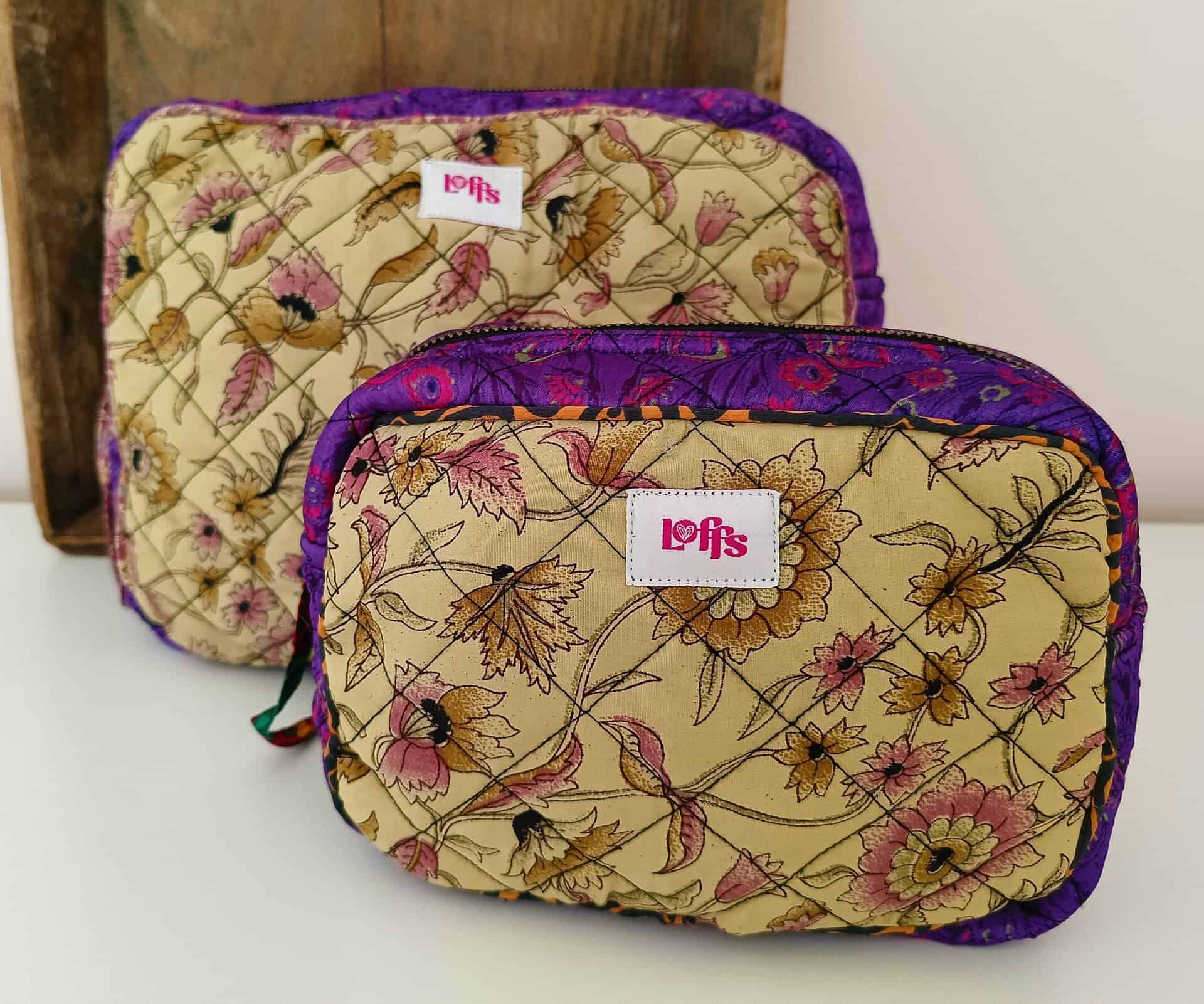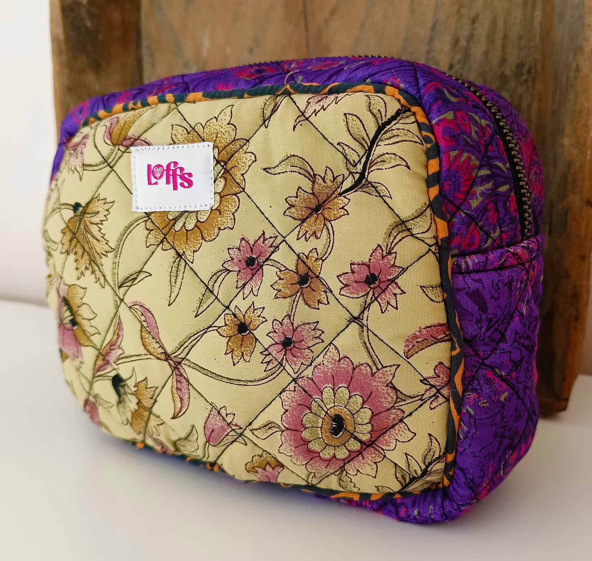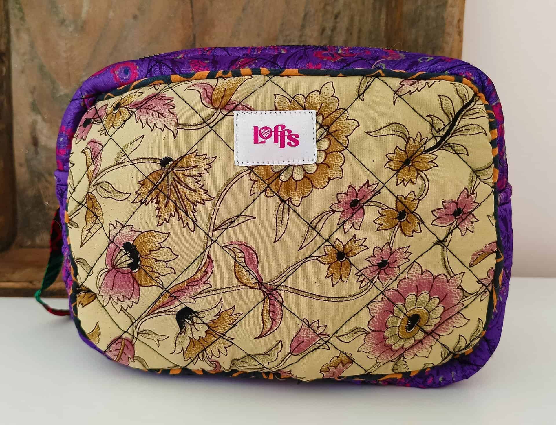 Deze leuke toilettas maat M is ideaal voor op reis! Wist je dat we van ieder printje maar 1 à 3 toilettassen hebben? Dus je shopt altijd je eigen unieke toilettas, hoe tof! Deze unieke toilettassen zijn gemaakt van hergebruikte saree stoffen uit India, die wij met liefde en zorg selecteren om een vleugje kleur en stijl aan jou dagelijkse leven toe te voegen. Ze worden met de hand gemaakt door getalenteerde ambachtslieden in India, die werken onder eerlijke werkomstandigheden en een eerlijk loon ontvangen voor hun vaardigheden.